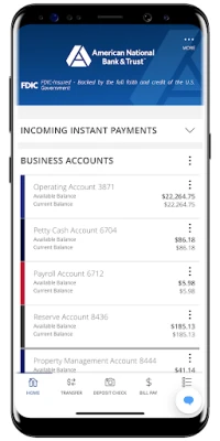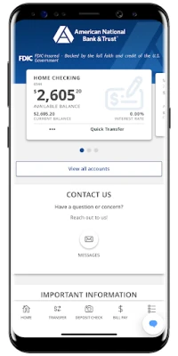 The American National Bank & Trust mobile app helps you manage your money, your way. Whether you’re checking your balance and recent transactions, transferring funds between your accounts, depositing checks, or paying bills, you can do your banking easily and securely—on any device.