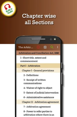 This ‘Arbitration and Conciliation Act 1996' app is very useful for Law professionals (Lawyer, Attorney ... and others alike.), Teachers, Students, anyone interested in learning this Law of India.