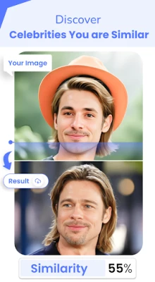 Our Celebrity Look Alike is easy to use. Simply take a photo with a camera or upload one from your gallery so our app will instantly analyze your facial features and match them to our extensive database of celebrities.
