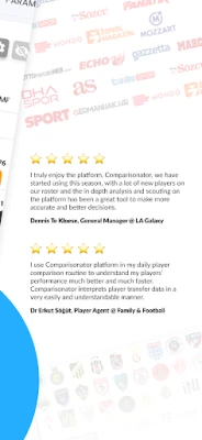 Comparisonator is a football data comparison tool created to help you make better and more efficient decisions. Access data from 271 professional leagues around the world and gain the ability to compare players and clubs by utilising over 500 different parameters.