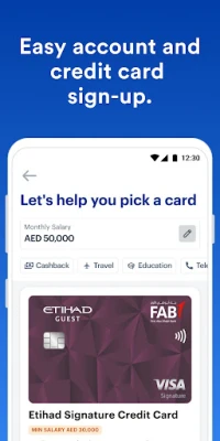 Start your journey with FAB right from your living room. Simply download the app and open an account, get a credit card – without stepping into a branch. You only need an Emirates ID.