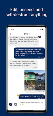 Self-Destructing Messages: Send messages that are automatically and conveniently deleted from the recipient’s device after a specified period of time.