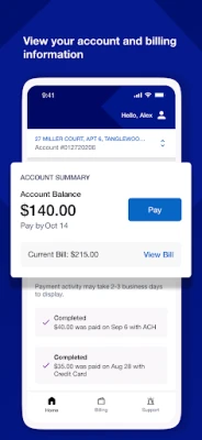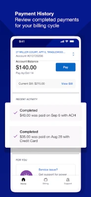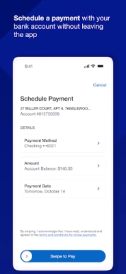 Now you can schedule a payment with your bank account, without having to leave the app. Use a new or saved bank account to pay your current bill, account balance or any other amount, just like you would on our website.