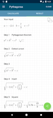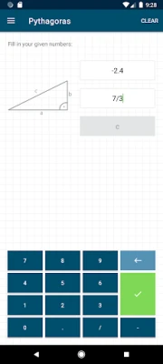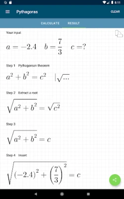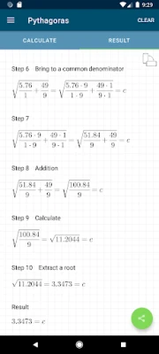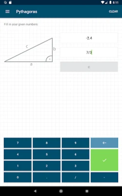 This app uses the Pythagorean theorem (a² + b² = c²) to solve all triangle edges accurately. All calculations can be shared at any time. Fractions are supported for flexible input.