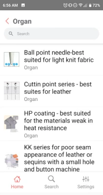 A free application for searching and viewing needle system of sewing machine industrial garment and home sewing machine. Some of them: Organ, Groz Beckert, Orange, Schmetz, Janome