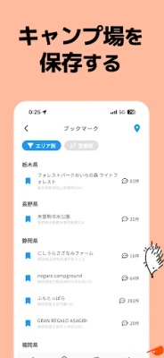 膨大なキャンプ場の口コミから気になるキャンプ場を見つけたら、ひとまずブックマーク機能でそのキャンプ場を保存。次回行きたいキャンプ場をリストアップすることも出来ます。